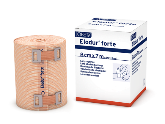 Långelastisk kompressionslinda till behandling av kronisk venösa besvär, bensår, svullna ben, post-traumatiska ödem. Kan användas som nattkompression. 8 cm x 7 m
