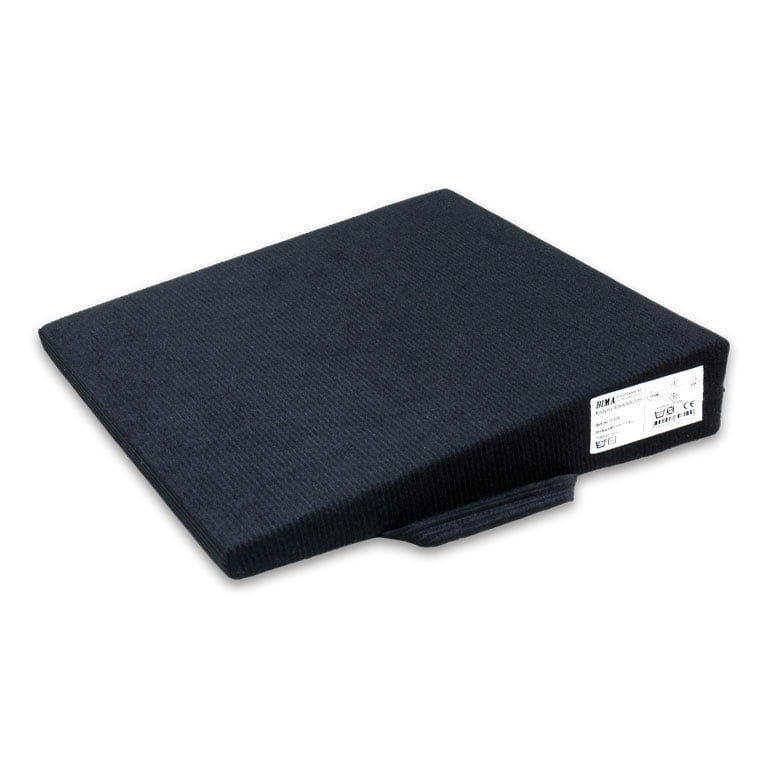 Den höga sidan skall vara bakåt. Dynan positionerar då båda låren framåt.