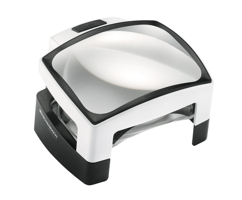Sladdlös förstoringsglas på stativ med mycket stort synfält och 3x förstoring. Ergonomisk lutad lins med kompakt design. 2 olika färgtemperaturer för jämn, reflexfri belysning av läsmaterialet. Ljuset slås av automatiskt efter 30 minuter för att förhindra onödig strömförbrukning. Resefodral och 3st AA batterier ingår.